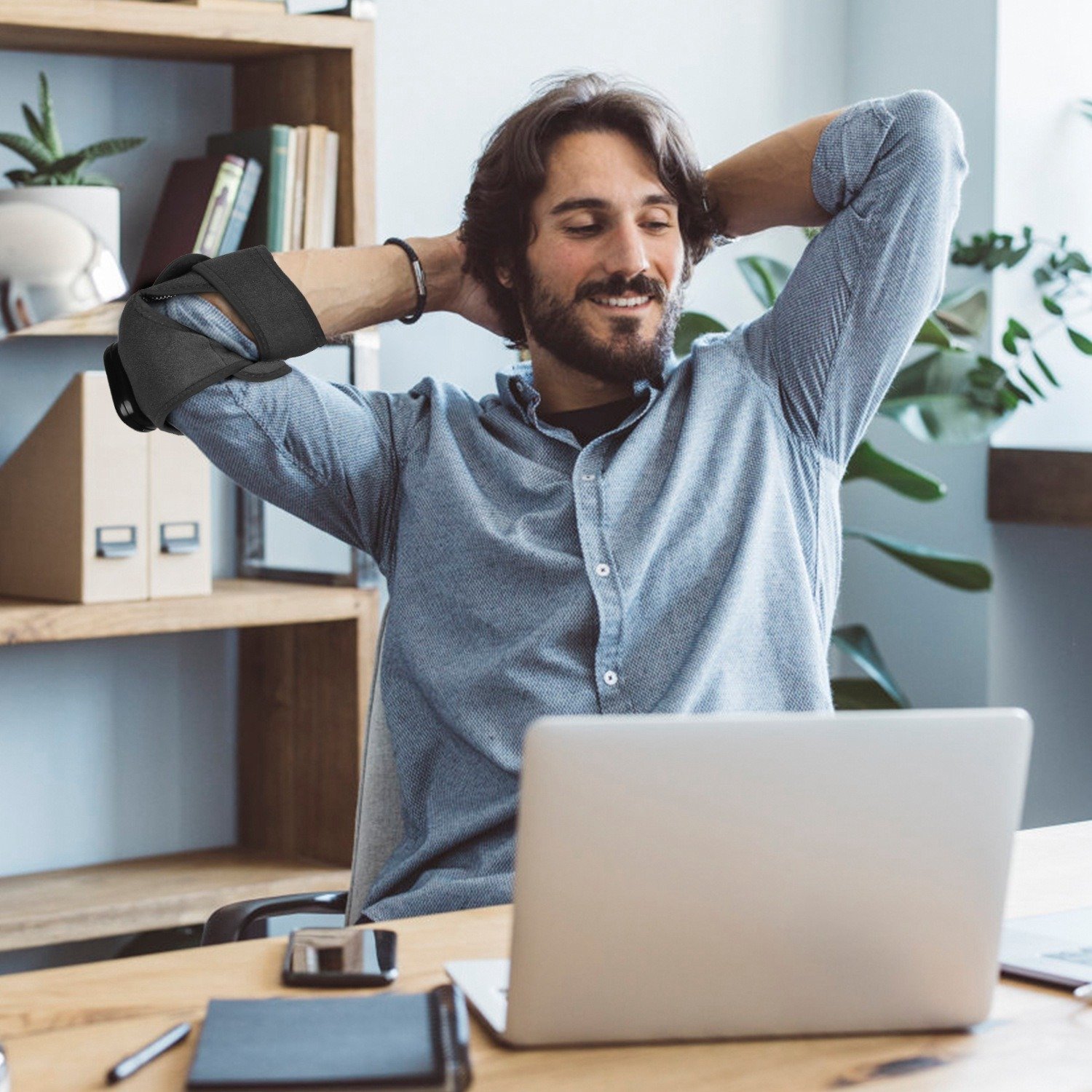 *3-In-1 Massager*:This heated massager wrap pad made of skin-friendly super soft fabrics,is not only used for knees,but also for elbow and shoulder. Equipped with two extension straps with length of 16in and 11in,help you to secure the massager in place on your arms,thighs,knees,calves or ankles. Strong fastener on the straps can attach very firmly,no worry about falling down.
